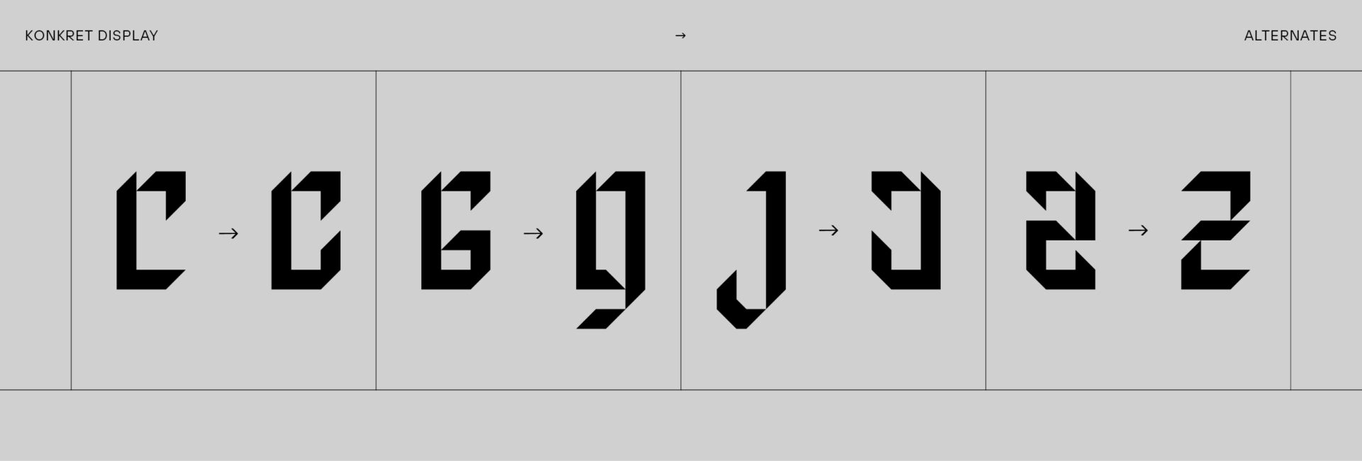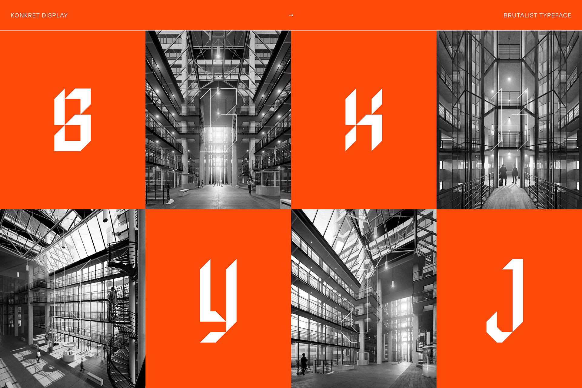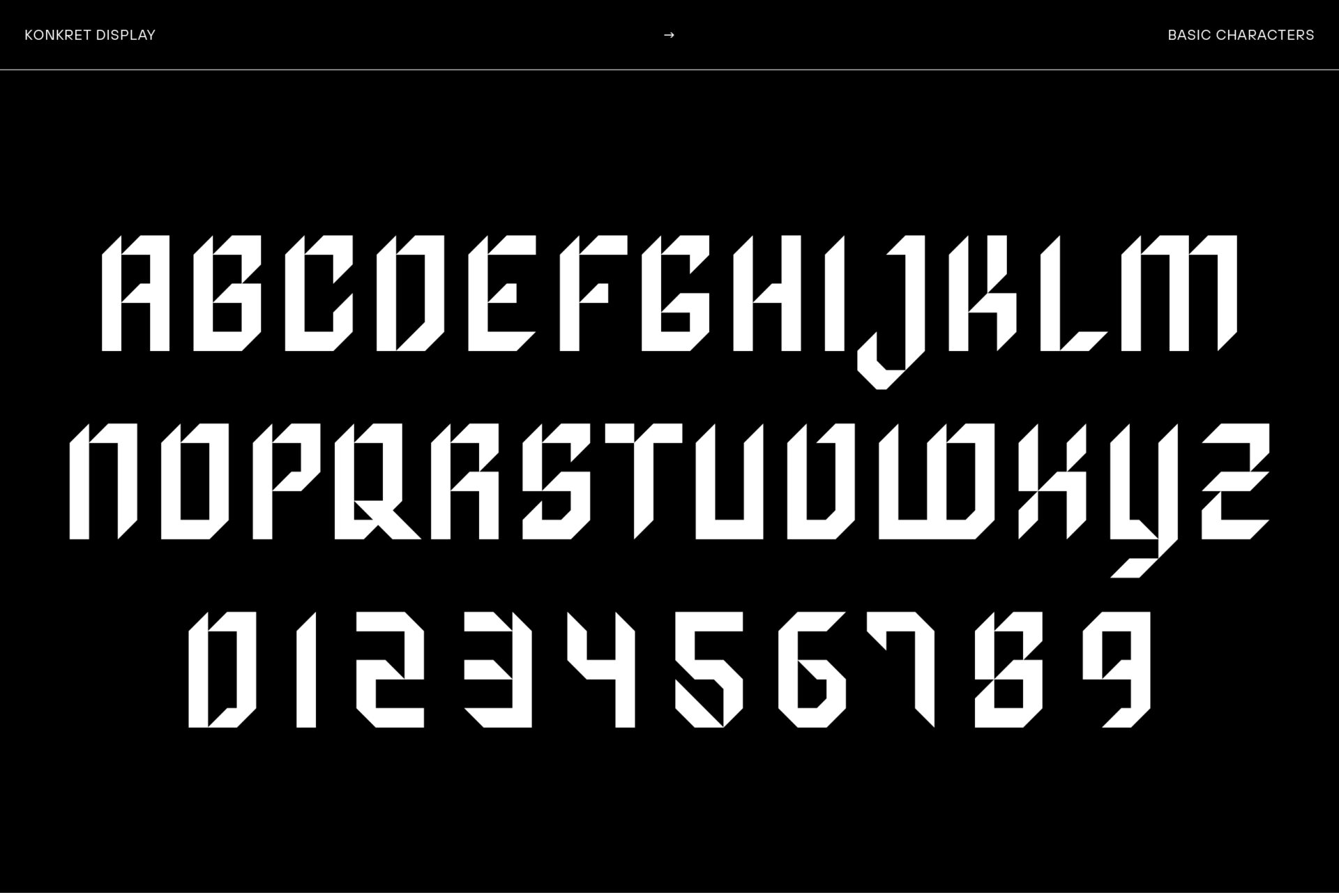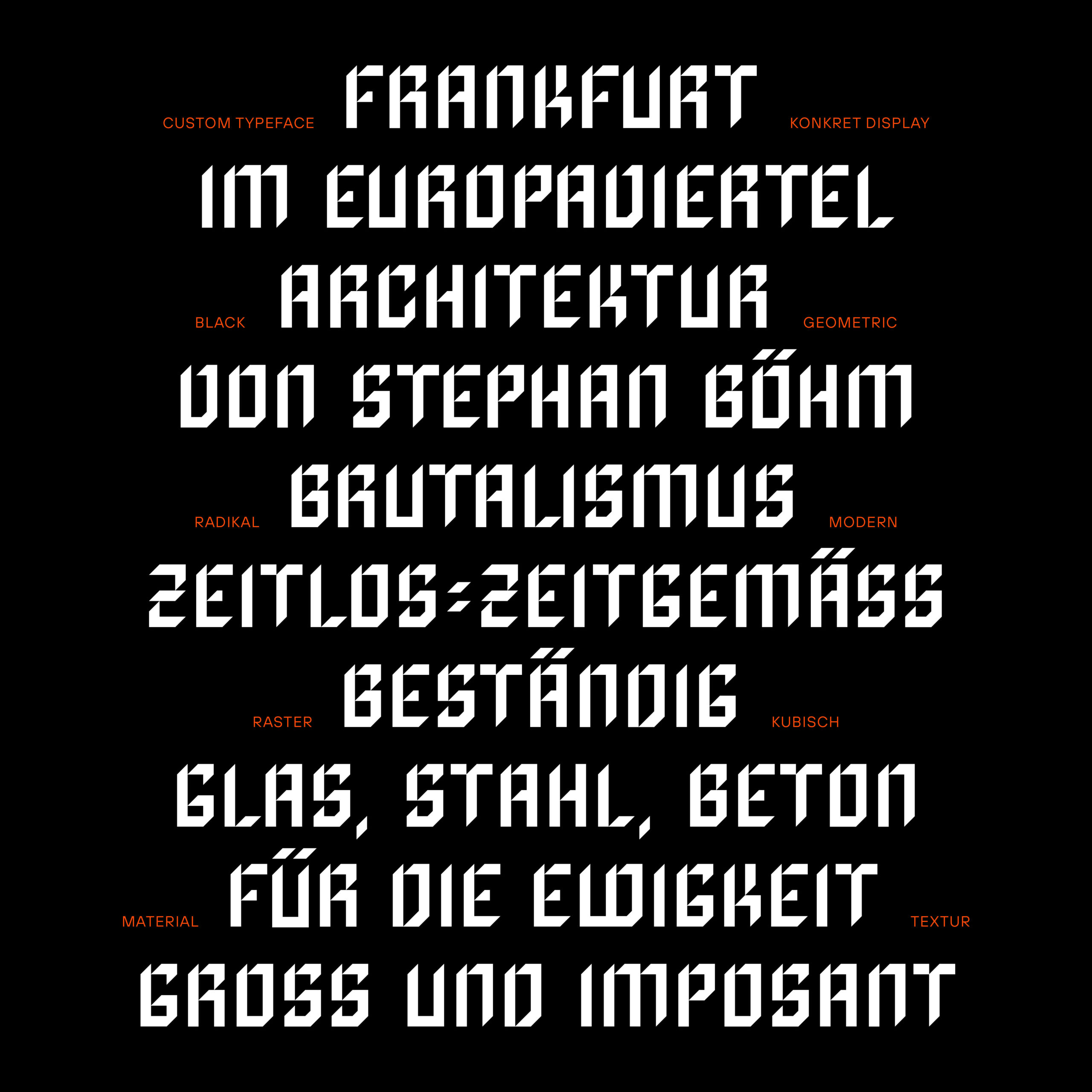 Im Zentrum steht eine modulare Schrift, aufgebaut aus einfachen geometrischen Elementen, die sich zu variablen Zeichen und symbolhaften Formen kombinieren lassen. Die Illustrationen greifen diese Logik auf und übersetzen Linien, Flächen und Texturen in eine abstrahierte, grafische Welt, die an die Materialität von Beton erinnert.
