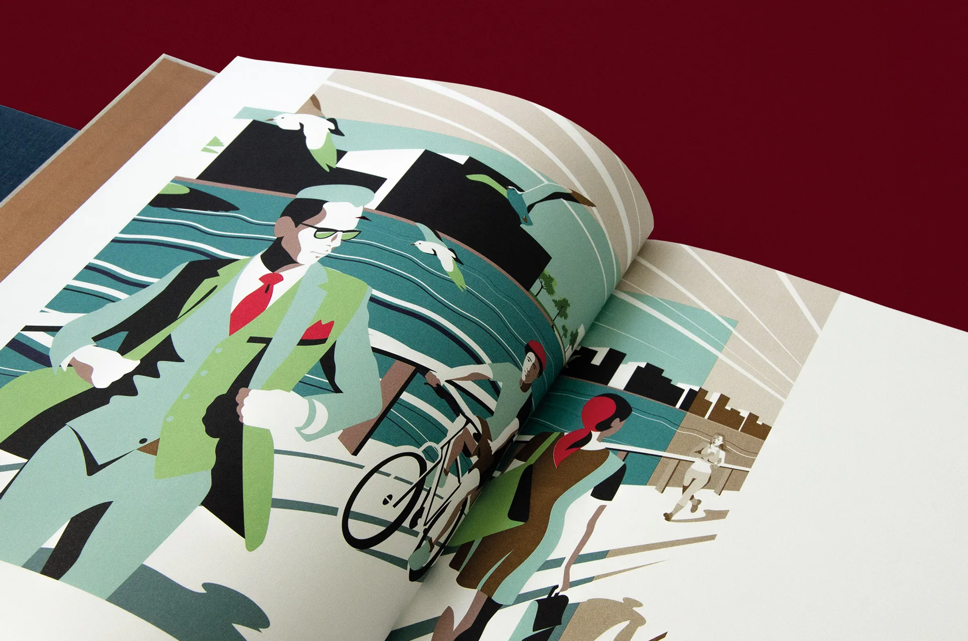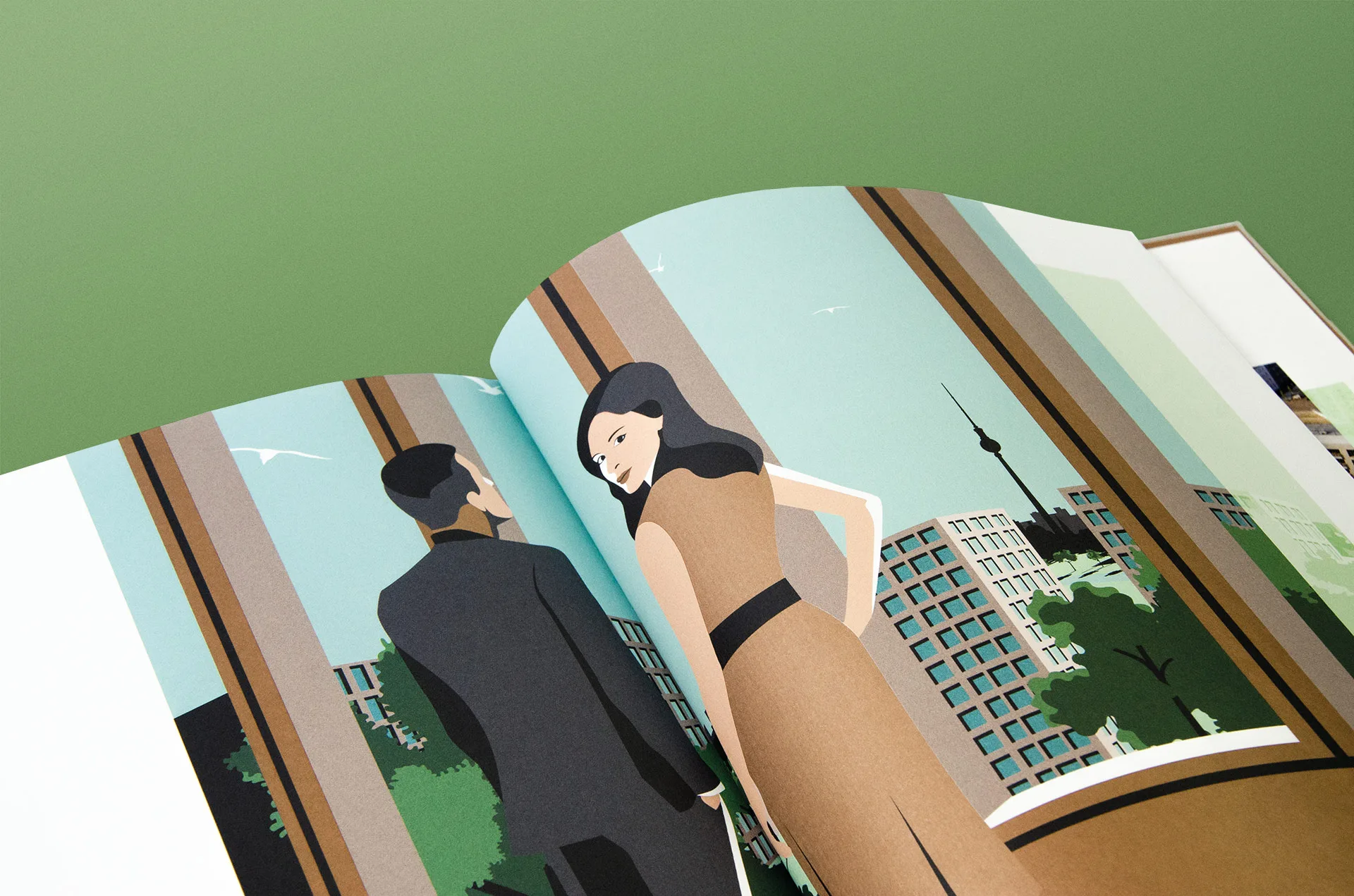 Fünf prägnante Illustrationen thematisieren die Lage, die grüne und familienfreundliche Umgebung sowie die Arbeitswelten im Gebäude. Ergänzt wird die Serie durch eine visuelle Auseinandersetzung mit der historischen Referenz des Ortes. Die Illustrationen wurden medienübergreifend eingesetzt – von digitalen Anwendungen bis hin zu großformatigen Umsetzungen im Stadtraum.